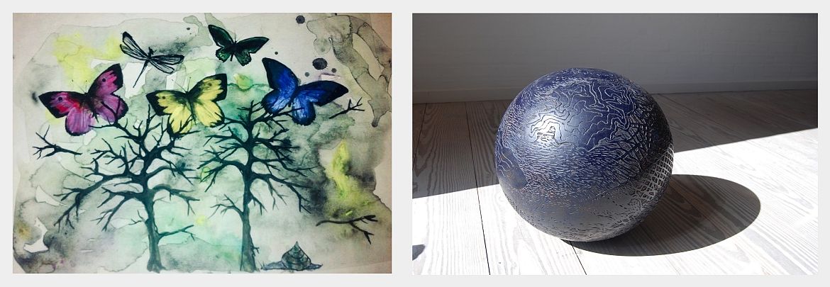 Det er stadigvæk muligt at opleve Peter Lundings udstilling 'Kortet, kroppen og koloden', der nu har fået selskab af Janni Mais fotryllende værker.