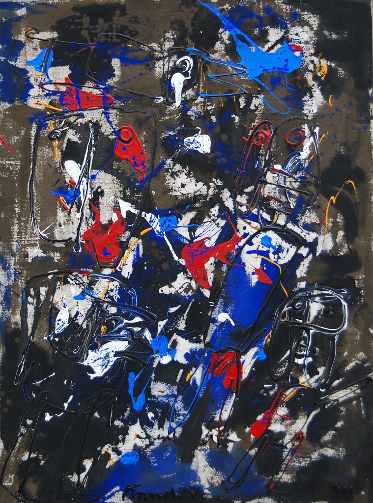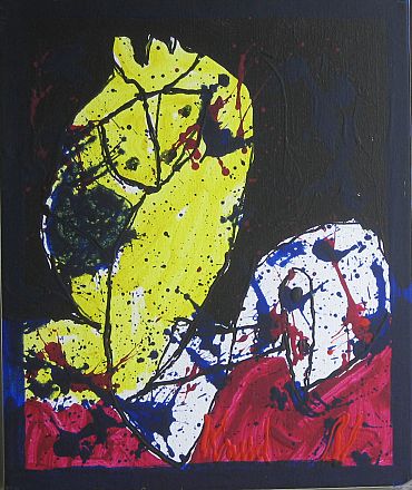 Knud Nielsen (1916-2008) var en multi-kunstner og arbejdede både med maleri, akvarel, keramik og grafik. Hans malerier og gouacher er intense og farvemættede - ofte med en gnist af voldsomhed, men lavet som kun den erfarne kunstner, der behersker og bestemmer over farver og lærred, mestrer det. Han er en af Danmarks mest betydelige kunstnere i det 20. århundredet.