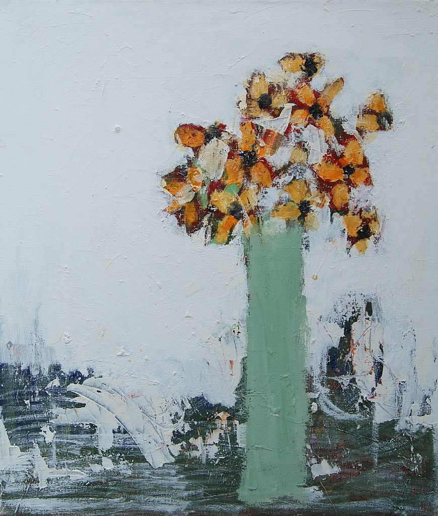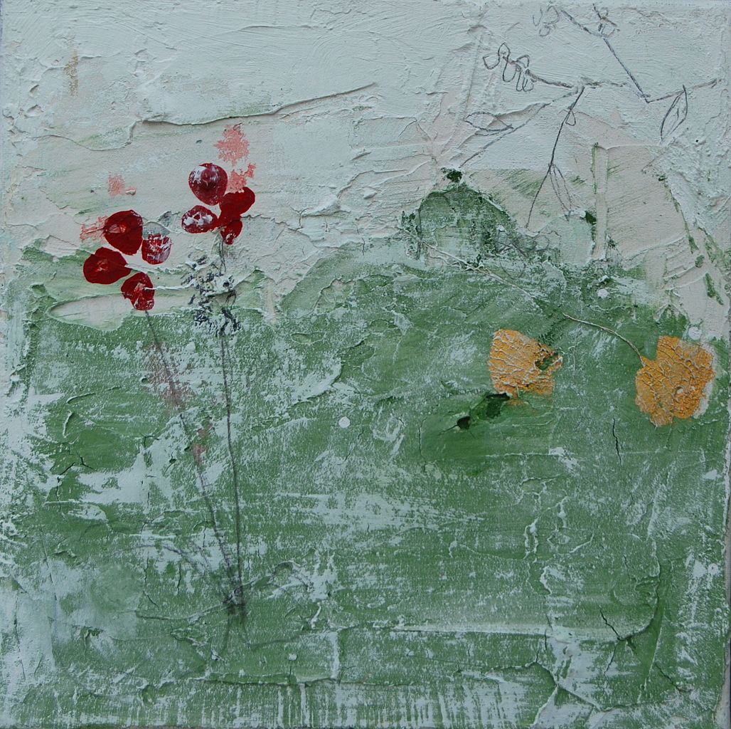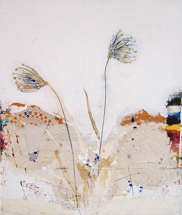 Naturens skrøbelige forgængelig er repræsenteret i blomstermotivet. Denne tematik spejles i de mange lag af forskellige naturmaterialer Tine Kragh benytter.