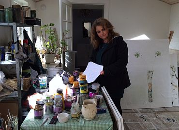 "I mine billeder skaber jeg rum man kan opholde sig i, et fredeligt og forhåbentligt smukt rum - hvor der ikke er en færdig fortalt historie. Her kan man gå ned i sit eget dyb, stå stille, være sig selv og måske få et glimt af klarhed."