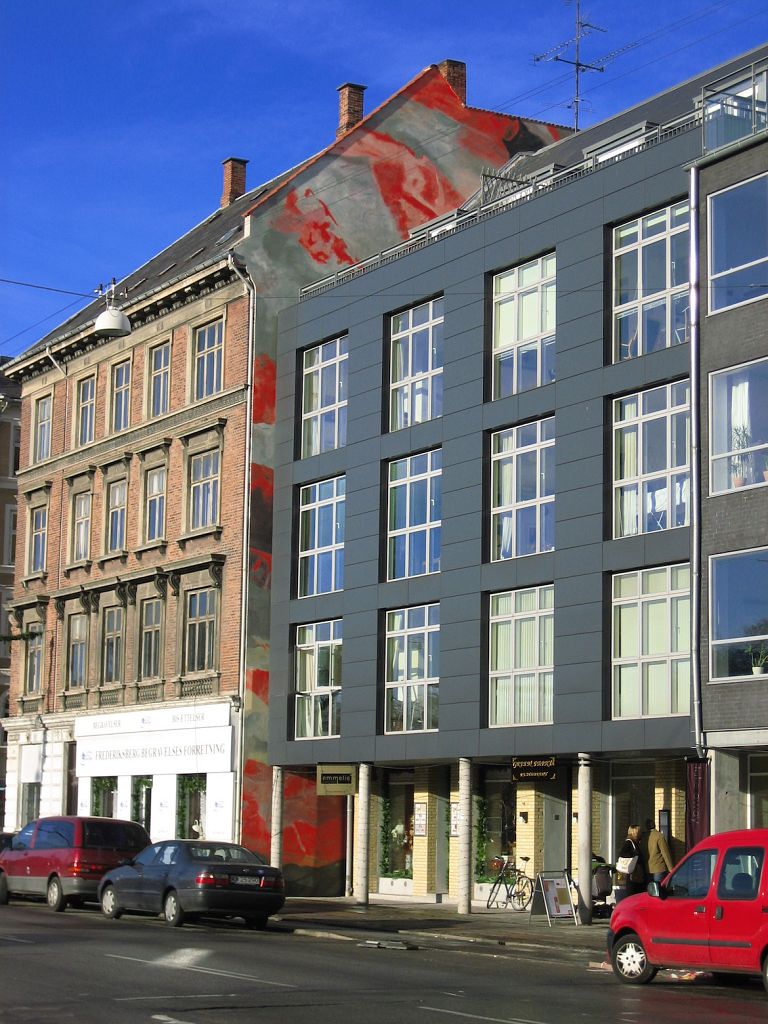 Kunstneren Bent Holstein mestrer et abstrakt lyrisk formsprog, smukt og originalt, en moderne natursansning – et landskab, som vi engang har mødt eller møder, et roligt nærvær. Denne triptykon af Bent Holstein skaber et helt specielt musisk forløb i gadebilledet.
